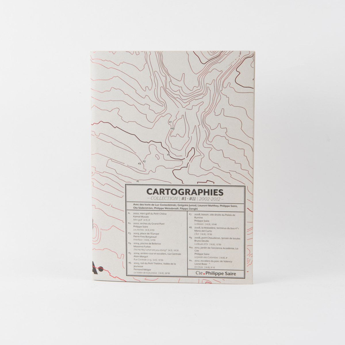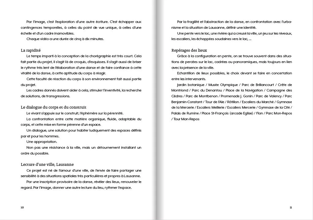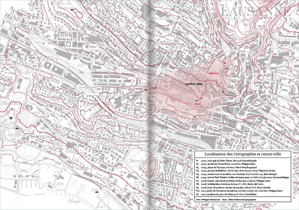 Lors de 11 « performances » Philippe Saire a fait découvrir au public plusieurs sites de la ville de Lausanne de manière insolite, par le mouvement. Cartographies témoigne de la volonté du chorégraphe de sortir la danse des théâtres. Il la rattache à la vie, l’amène aux gens qui passent.