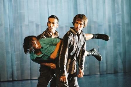 (…) Une lumière sauvage vacille sur la scène, les danseurs tombent, roulent, sautent, se poussent agressivement, la tendresse apparaît comme une nostalgie.
